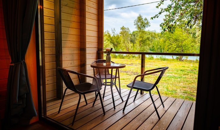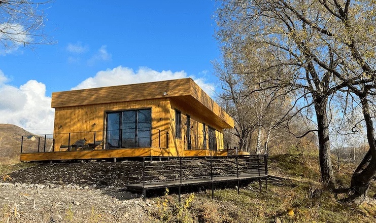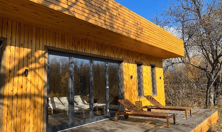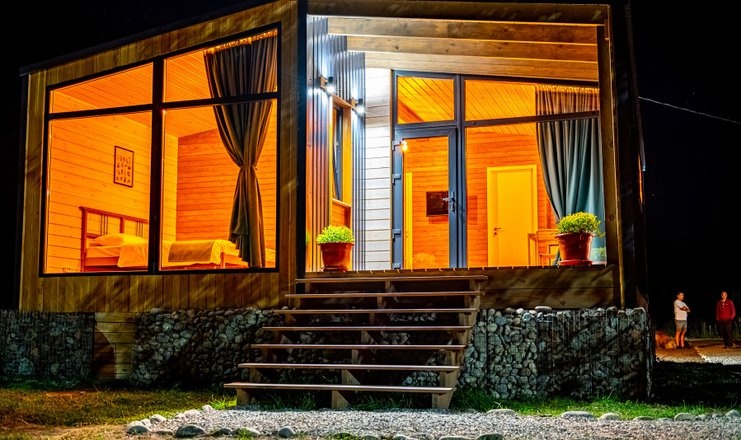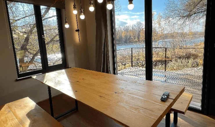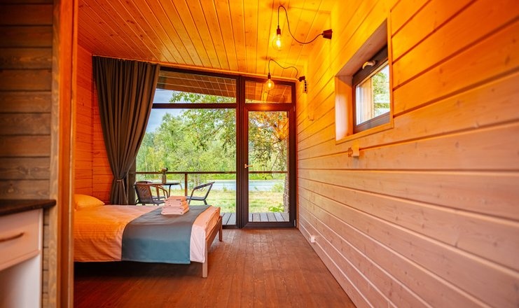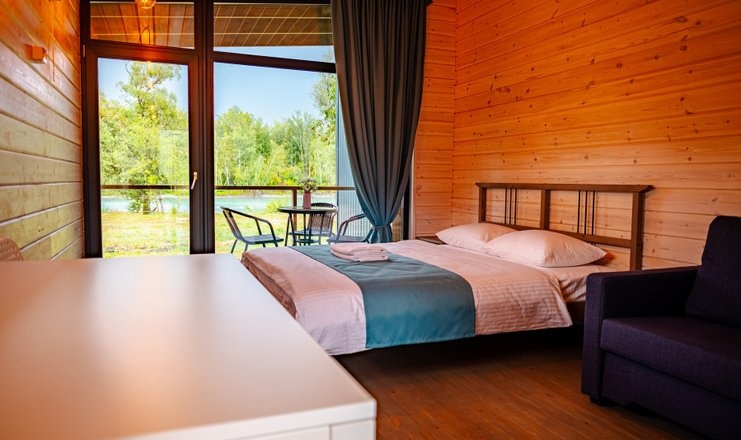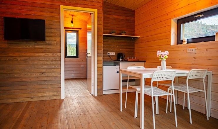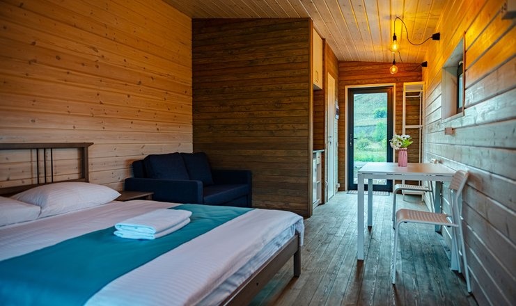 Комплекс предлагает для размещения домики барнхаус с панорамными окнами и видом на р. Катунь. Каждый домик оборудован террасой, внутри – удобная мебель, ТВ, холодильник, чайник, ванные комнаты с душевыми кабинами. Для удобства гостей номера дополнительно укомплектованы мини-кухнями с необходимой бытовой техникой для самостоятельного приготовления еды. Также на территории работает кафе, где можно заказать завтрак, обед и ужин, и даже оформить доставку еды в номер.
