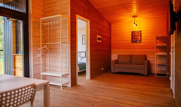 Комплекс предлагает для размещения домики барнхаус с панорамными окнами и видом на р. Катунь. Каждый домик оборудован террасой, внутри – удобная мебель, ТВ, холодильник, чайник, ванные комнаты с душевыми кабинами. Для удобства гостей номера дополнительно укомплектованы мини-кухнями с необходимой бытовой техникой для самостоятельного приготовления еды