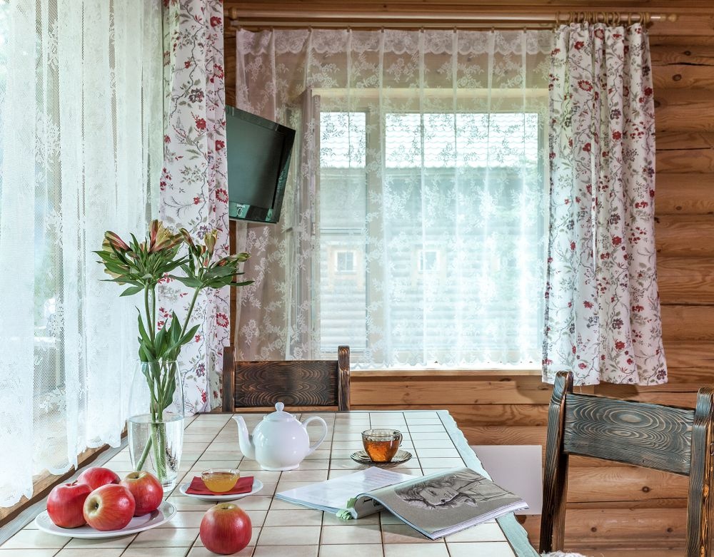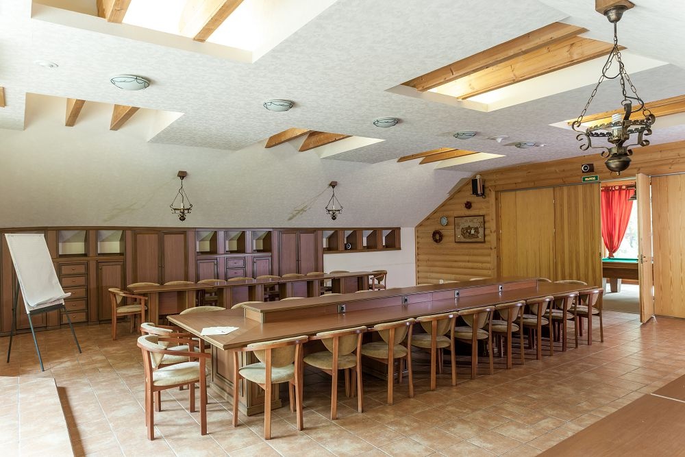 К услугам гостей комплекса изысканный ресторан русской кухни, оборудованный в стиле русской избы и украшенный диковинными предметами русского быта. Все блюда готовятся из экологически чистых продуктов. На втором этаже ресторана находится просторный конференц-зал, который при необходимости трансформируется в банкетный зал.