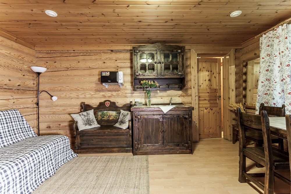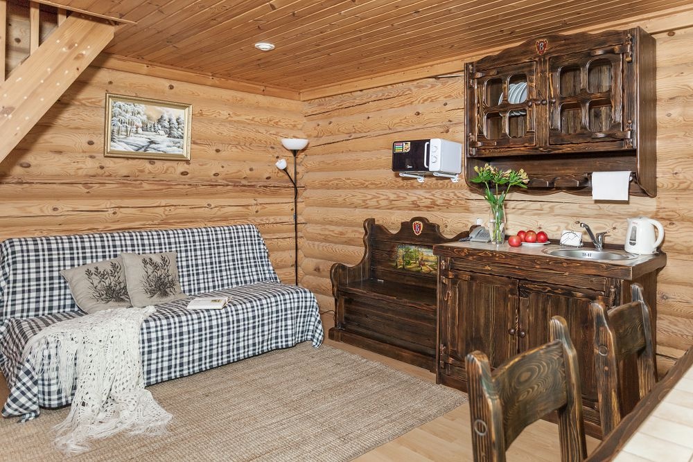 На территории комплекса работает сауна, где можно отдохнуть и расслабиться. В сауне есть купель, которая наполняется водой из артезианской скважины, но при желании можно прохладиться в открытом пруде. Отдохнуть после сауны можно в комнате отдыха у растопленного камина. При необходимости отдыхающим доставят заказ из ресторана, а на веранде можно устроить барбекю – она оборудована для этих целей всем необходимым.