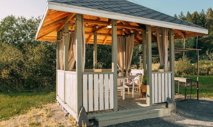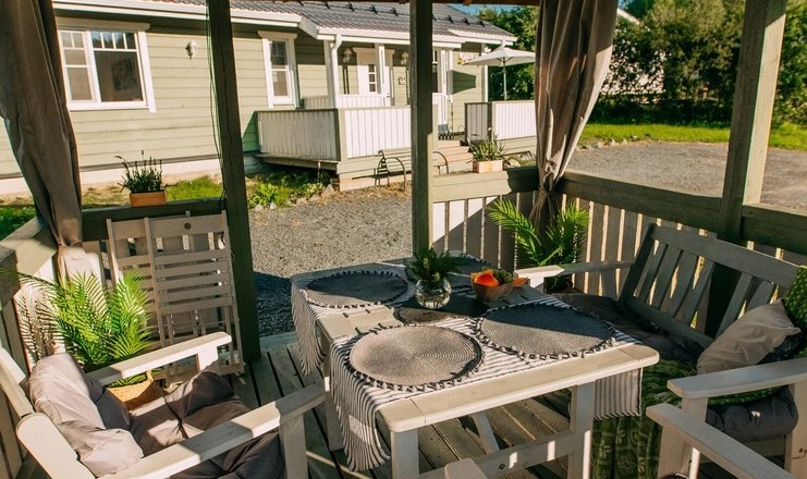 Эко-дома в скандинавском стиле, оборудованные всем необходимым для комфортного отдыха. Дома расположены в небольшом коттеджном поселке, вблизи залива Ладожского озера