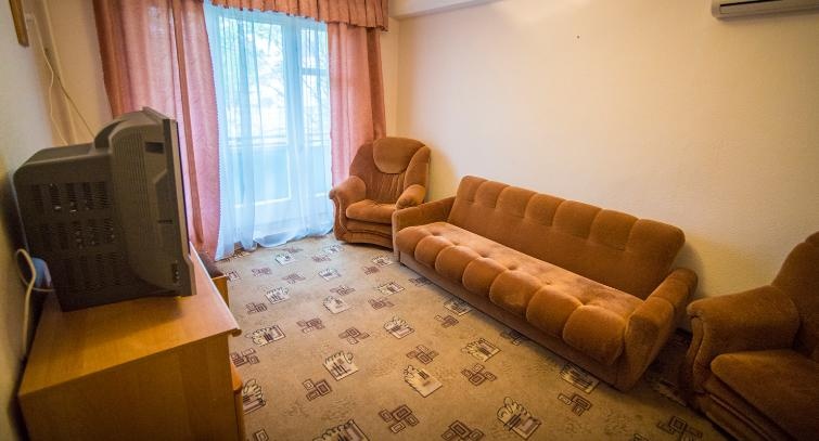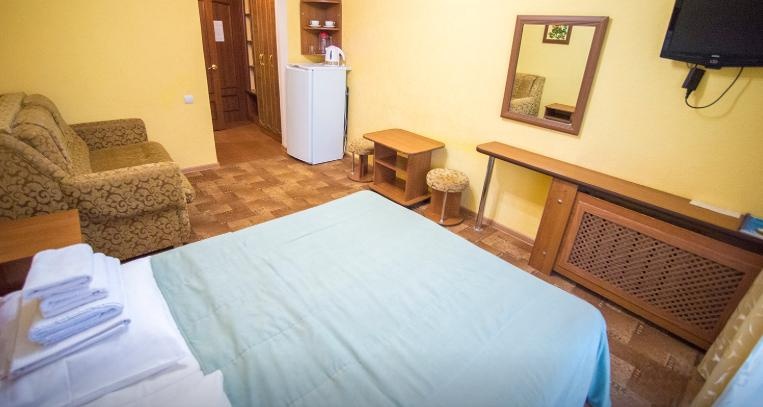 В номере 2 основных места и 1 дополнительное (раскладной диван или евро-раскладушка).