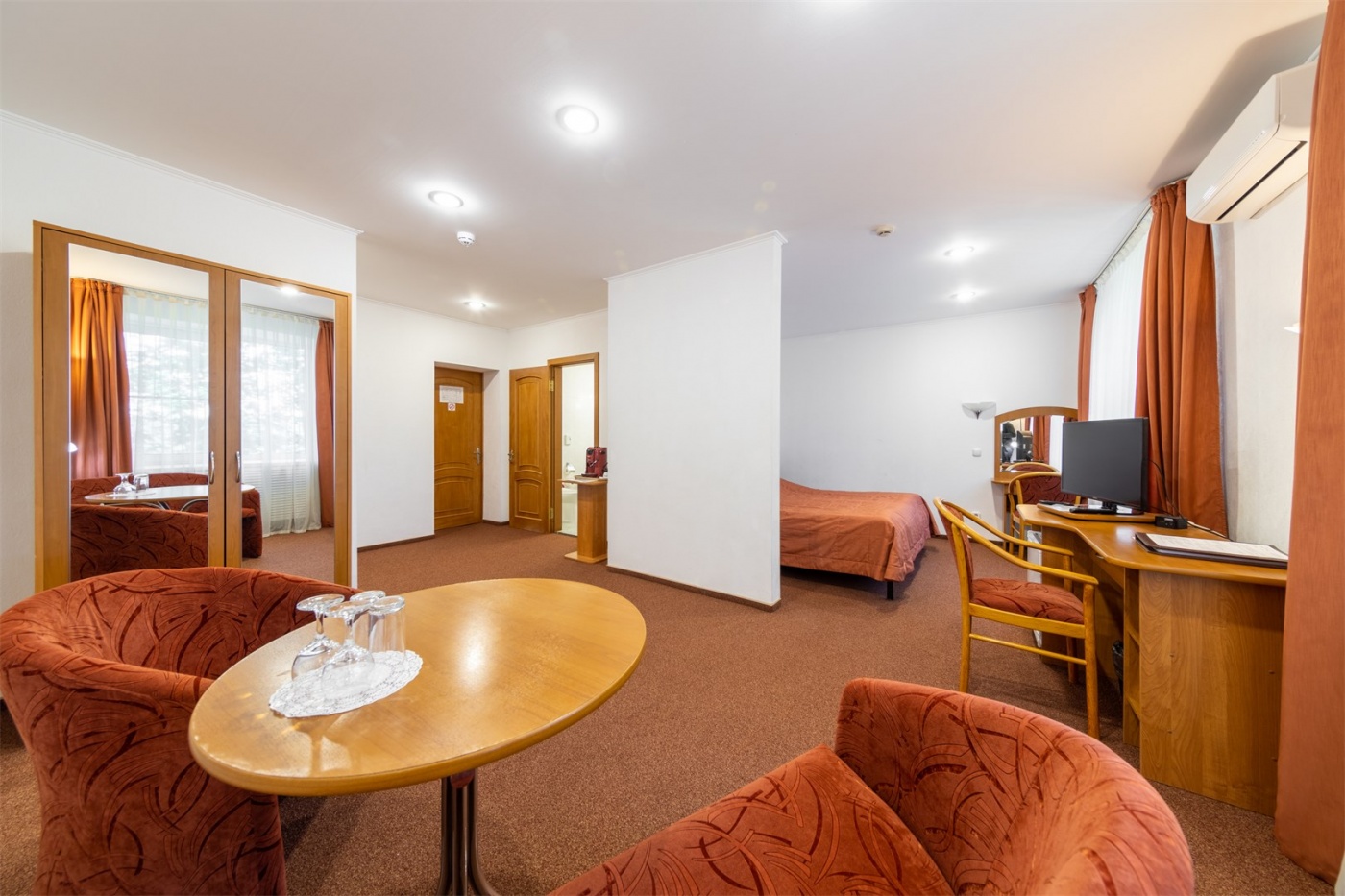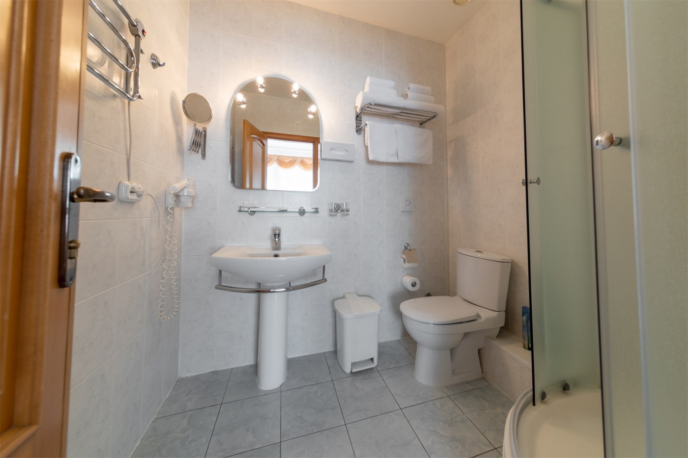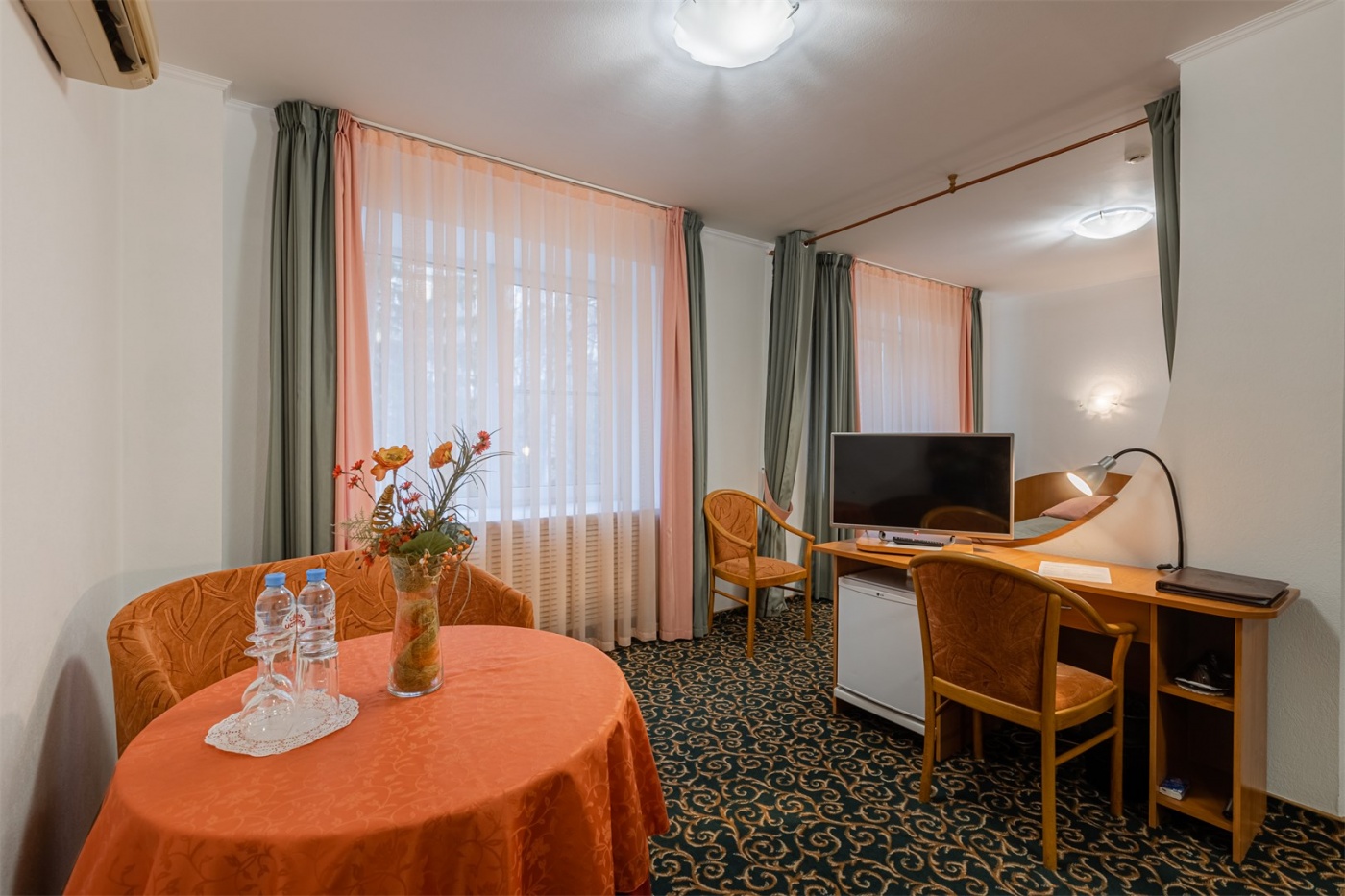 Уютный однокомнатный 2-местный номер без балкона. Оснащён двумя односпальными или большой двуспальной кроватью. Оборудован сплит-системой, холодильником и телевизором. В номере имеется санузел с ванной. В наличии комплект банных полотенец, косметические средства и фен.