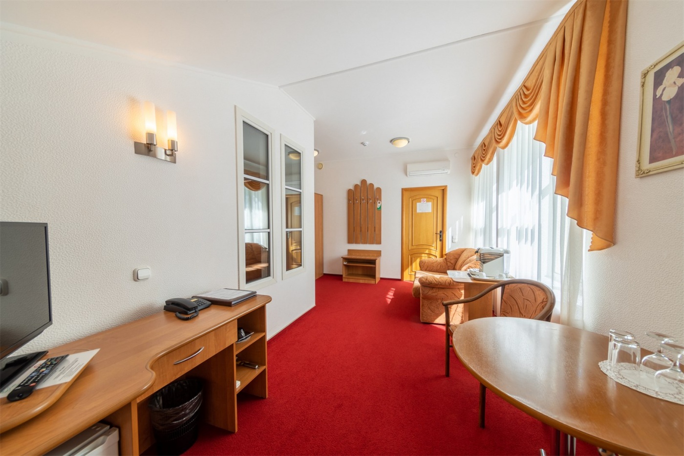 Просторный однокомнатный 2-местный номер повышенной комфортности. Оснащён двумя односпальными или большой двуспальной кроватью. Оборудован сплит-системой, холодильником и телевизором. В номере имеется санузел с ванной. В наличии комплект банных полотенец, косметические средства и фен.