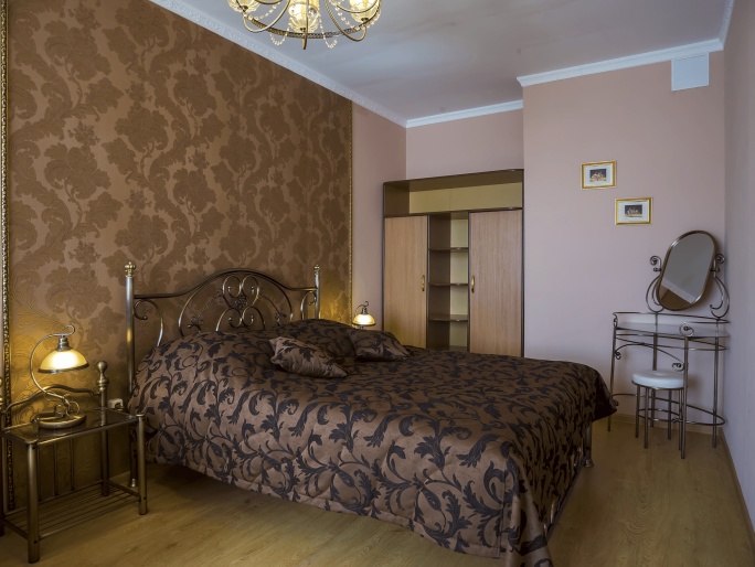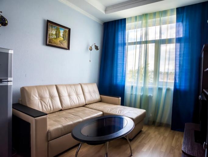 Большой, удобный двухкомнатный номер, разделенный на гостиную и спальню. Номер оборудован двуспальной кроватью, раскладным диваном, необходимой мебелью и бытовой техникой. В номере собственный санузел с ванной.