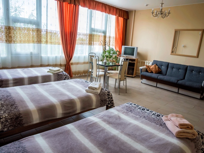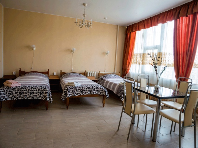 Однокомнатный номер для 3 человек, оборудованный тремя кроватями, необходимой мебелью и бытовой техникой. Санузел общий, находится на этаже.