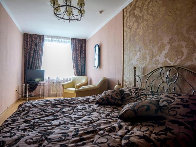 Просторный однокомнатный номер, оборудованный двуспальной кроватью, необходимой мебелью и бытовой техникой. В номере собственный санузел с ванной.