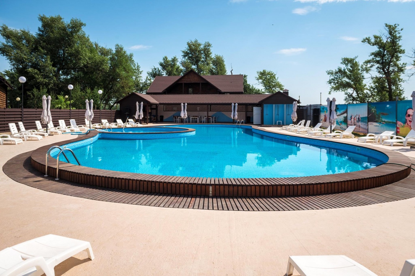 На территории базы отдыха имеются большой и детский бассейны, банный комплекс, спортивная и детская площадки, ресторан.