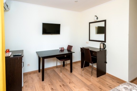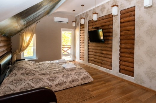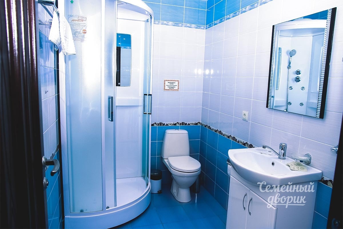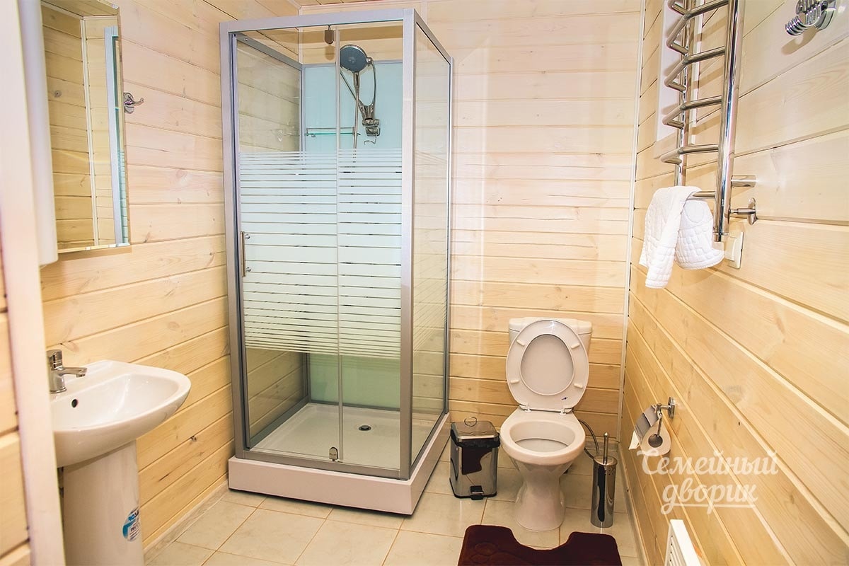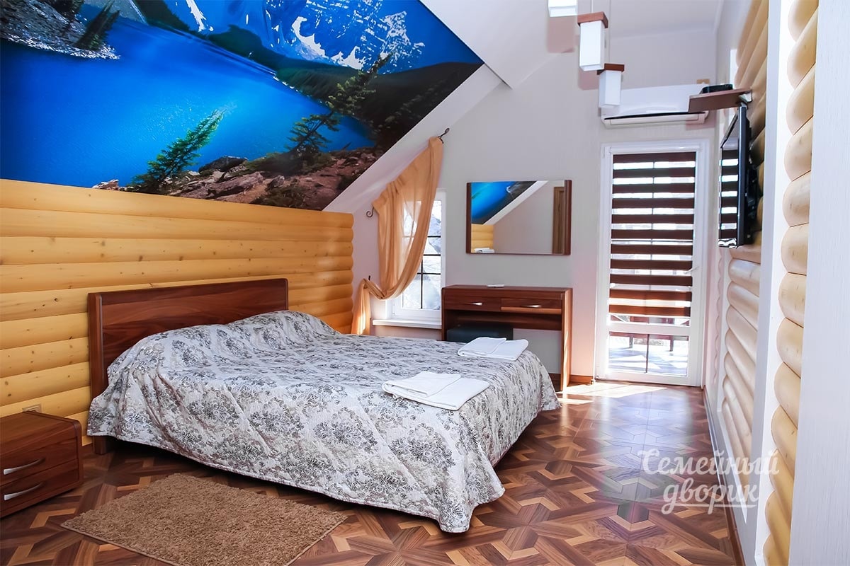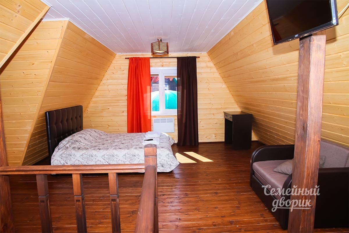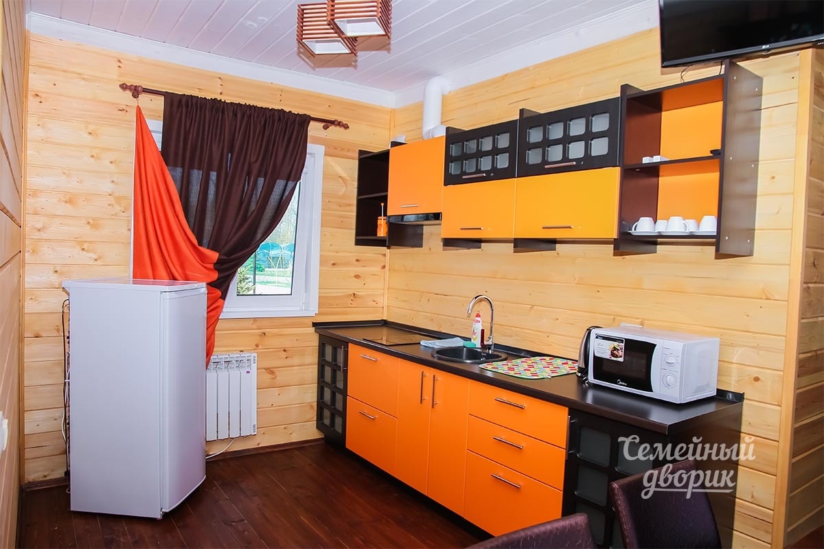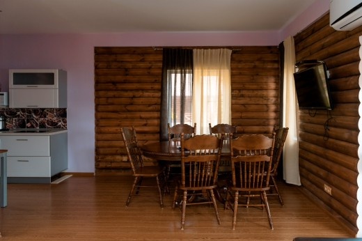 Проживание возможно в коттеджах на 6 или 8 человек, а также в двухместных номерах гостиничного корпуса.