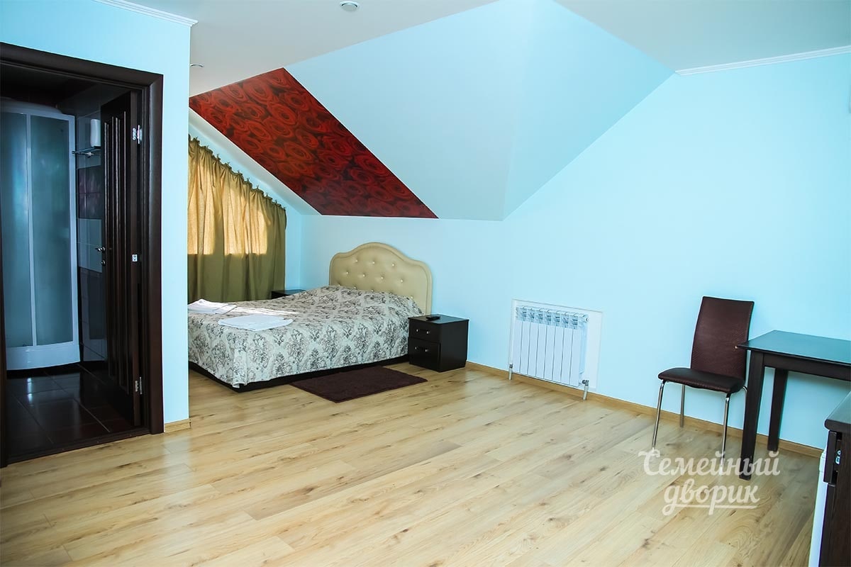 Просторные номера с двуспальными кроватями в двухэтажной гостинице.